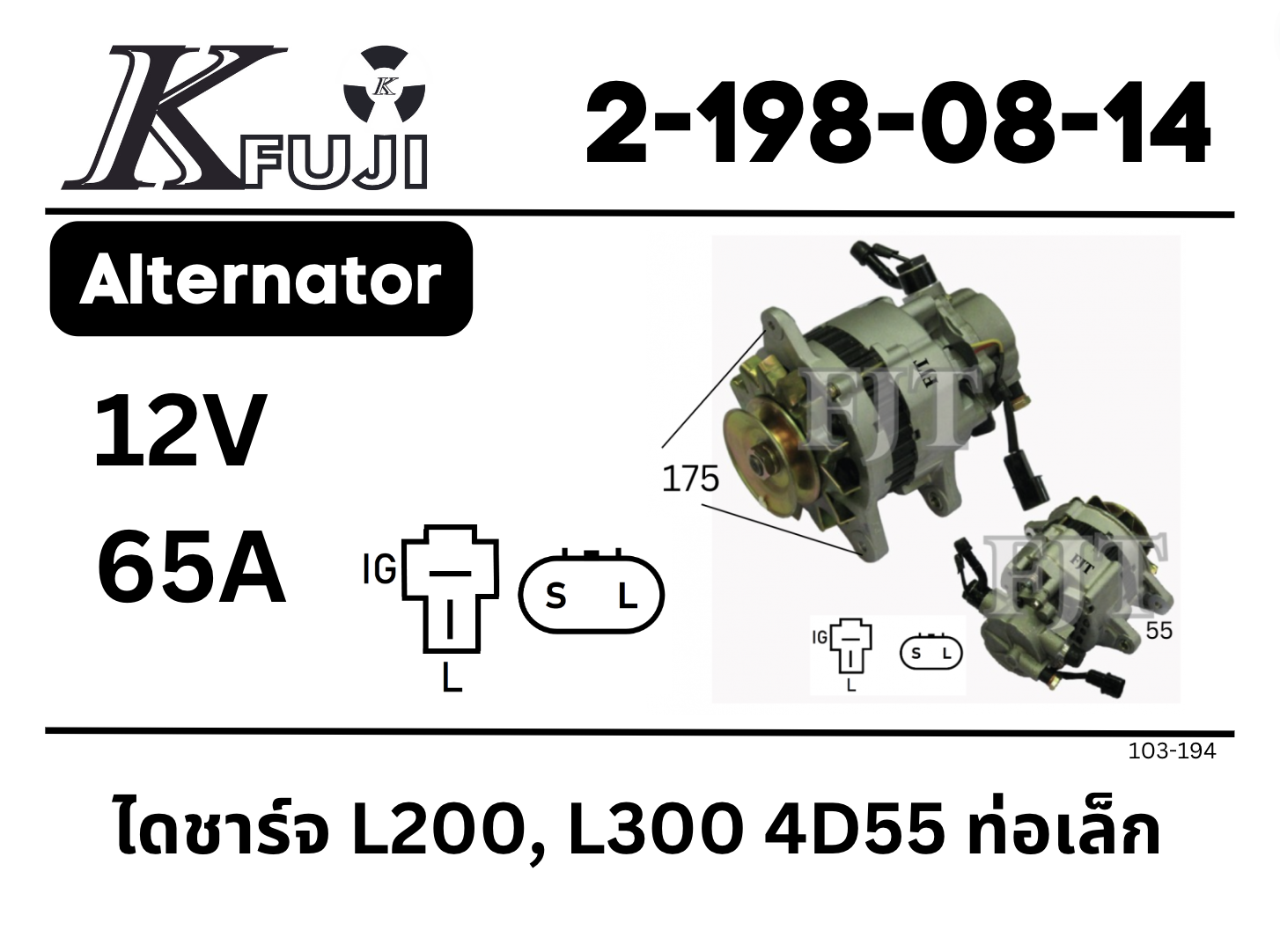 ไดชาร์จ Mitsubishi L200, L300 4D55 12V 65A 21980814