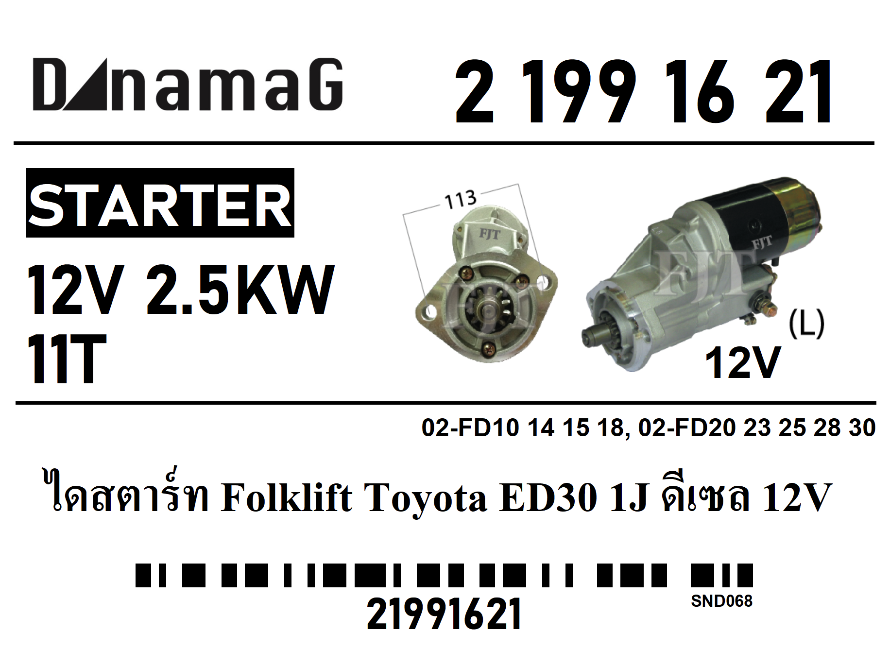 ไดสตาร์ท Folklift 1J ED30 ดีเซล 12V2.5KW, 24V4.5KW