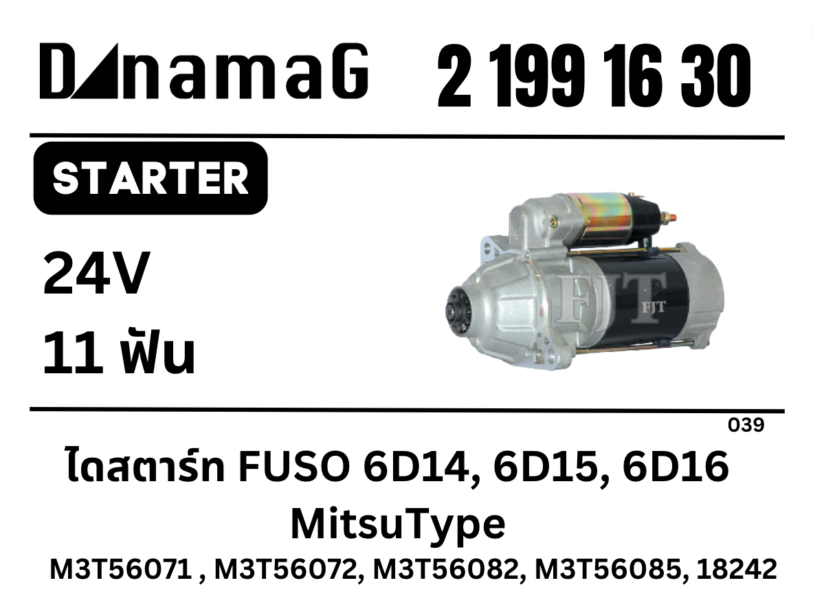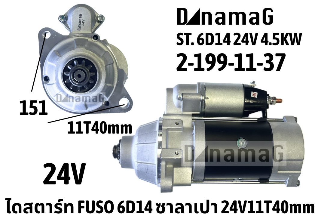 ไดสตาร์ท สำหรับ FUSO 6D14, 6D15, 6D16 24V 11ฟัน 40mm 4.5kwแบบMitsuType