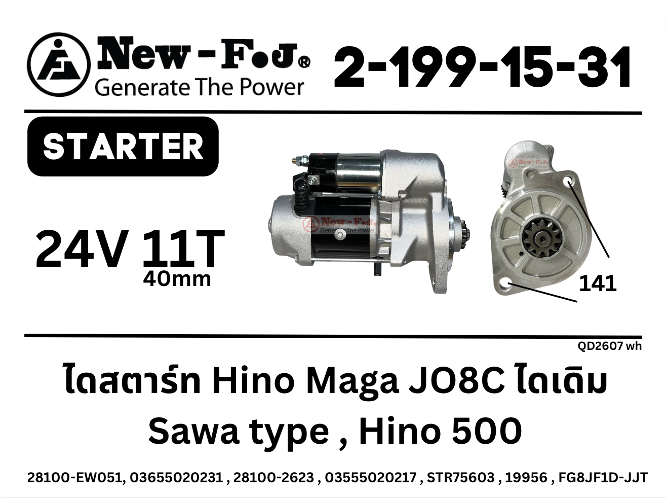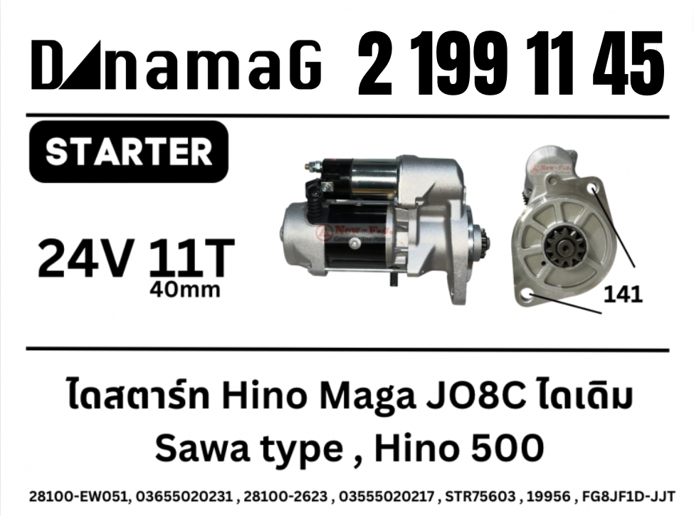 ไดสตาร์ท Hino Maga JO8C ไดเดิม SawaFuji 24V