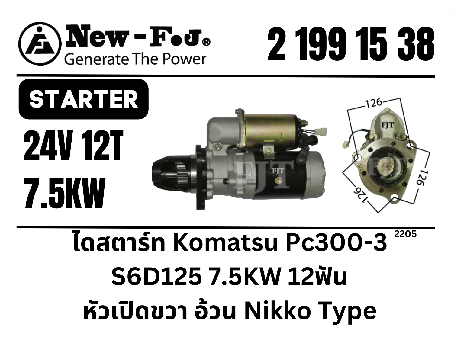 ไดสตาร์ท S6D125 PC300-3 24V 7.5KW 12ฟัน เปิดขวา อ้วน 2-199-15-38