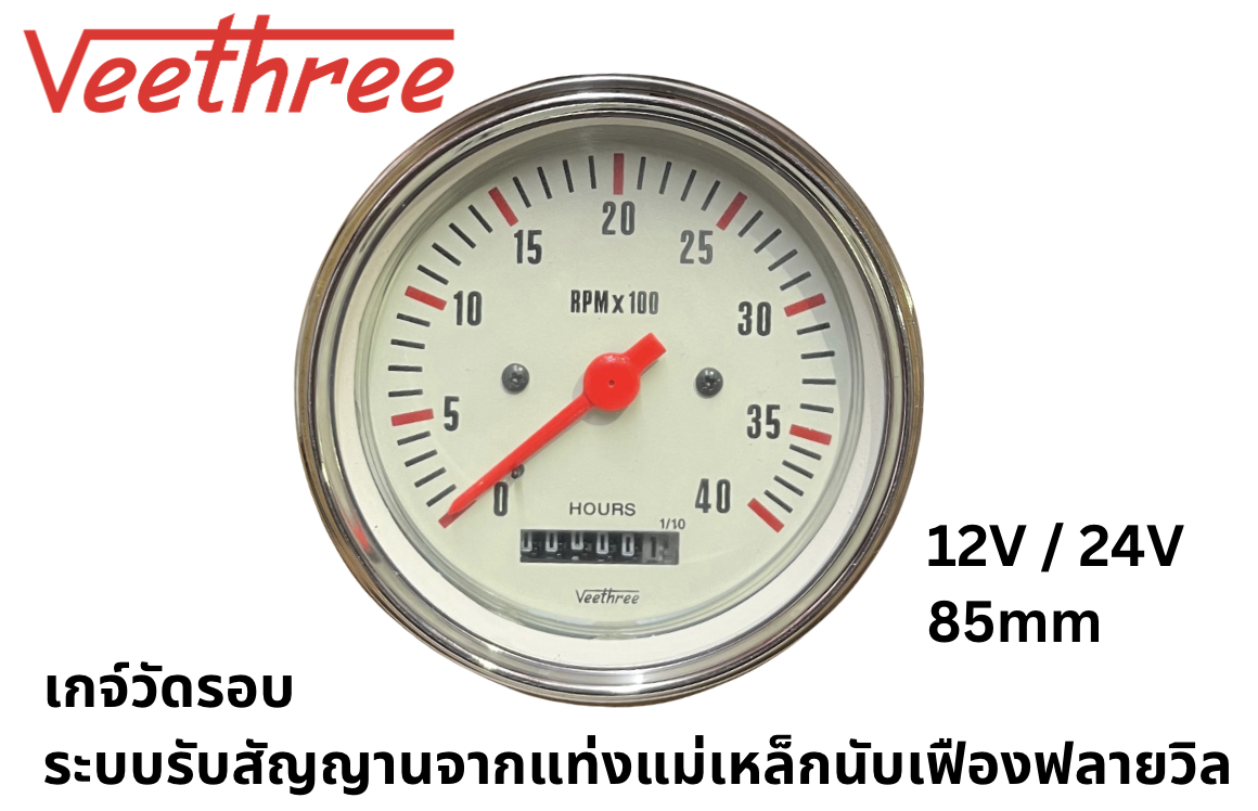 0-4000 รอบ rpm,, ขนาดหน้าปัด 85mm dial , 12V/24V