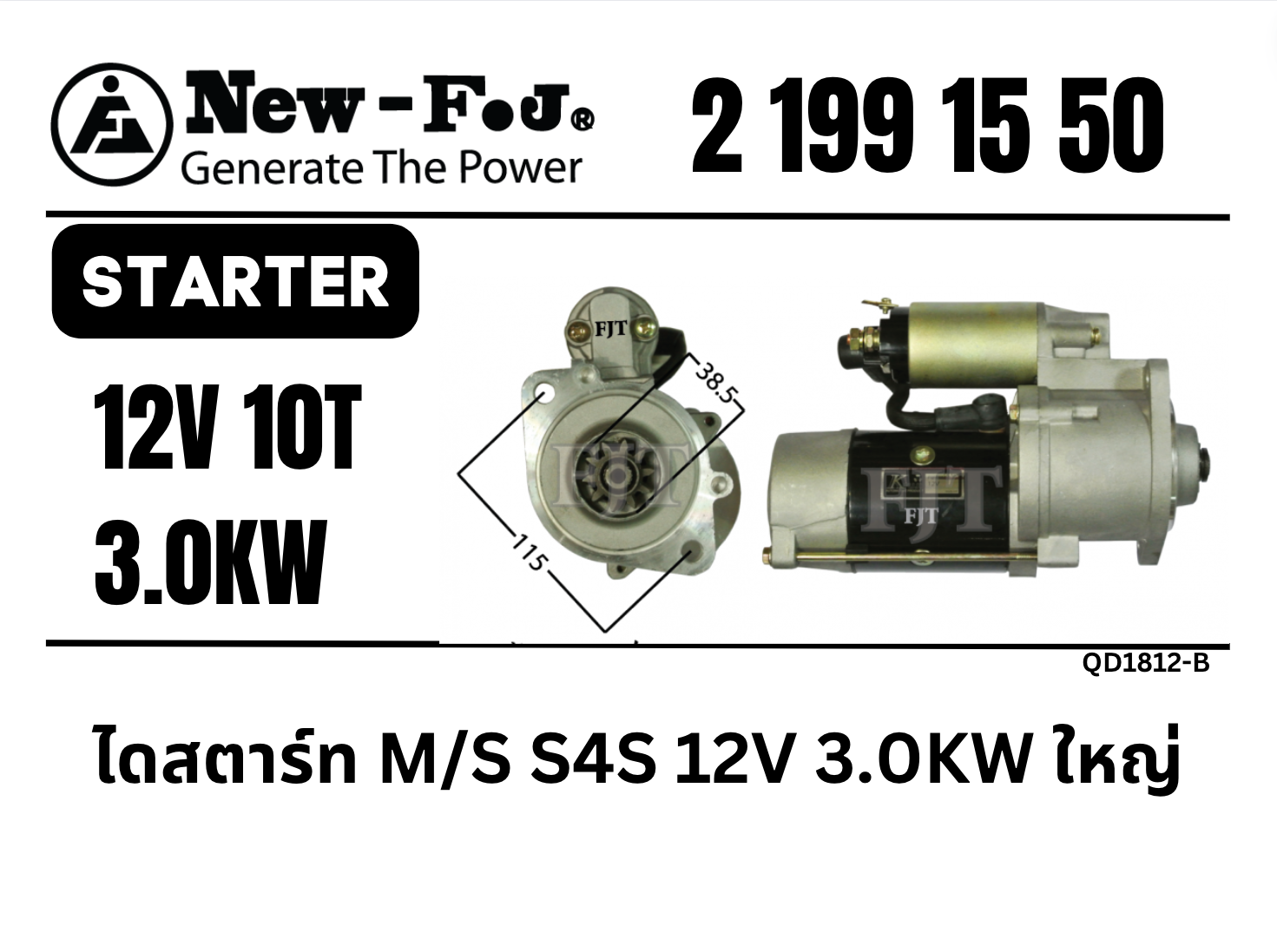 ไดสตาร์ท S4S 12V 3.0KW ใหญ่ 2-199-15-50