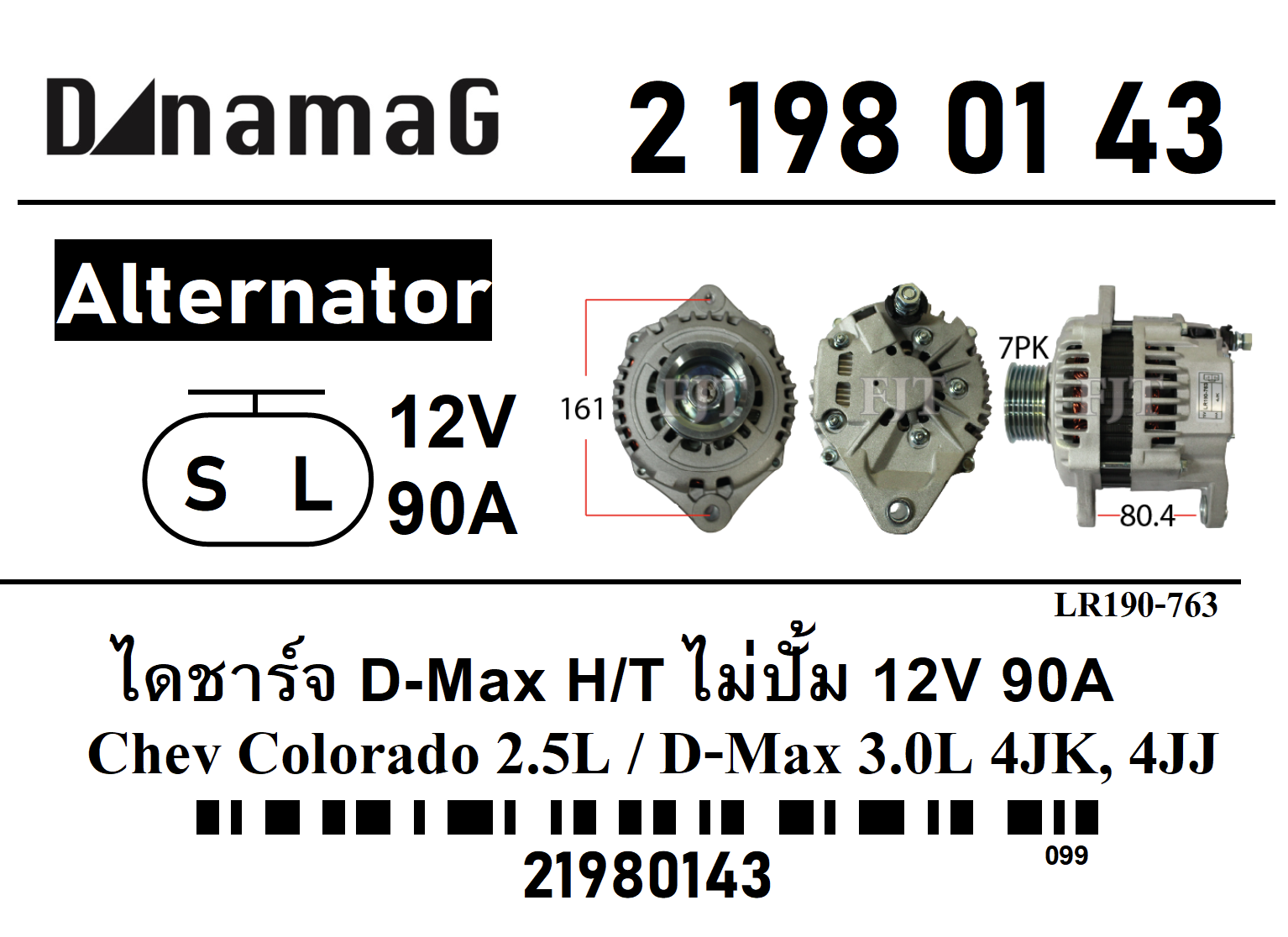 ไดชาร์จ DMax 3.0L , Chevlolet Colorado 2.5L