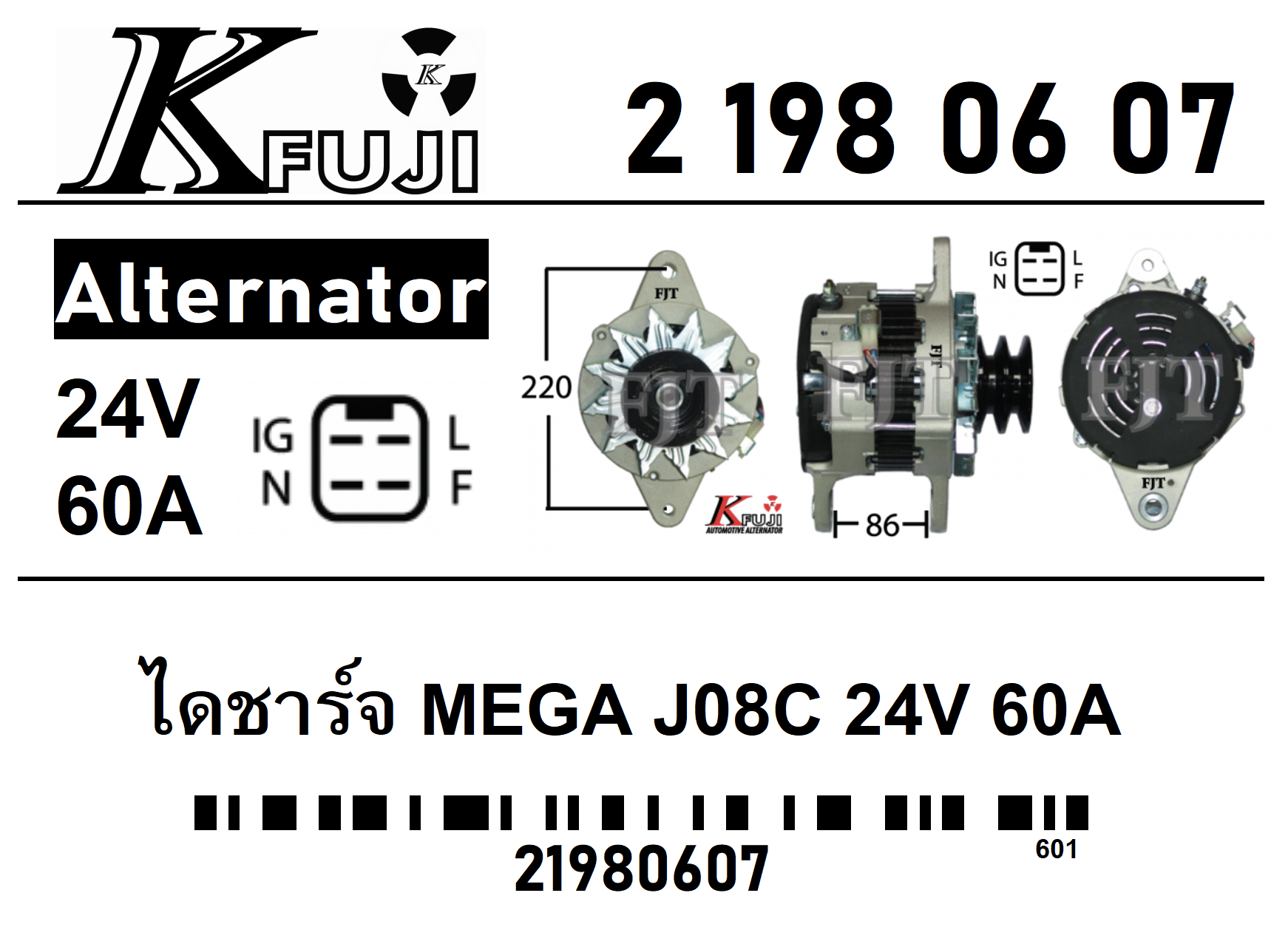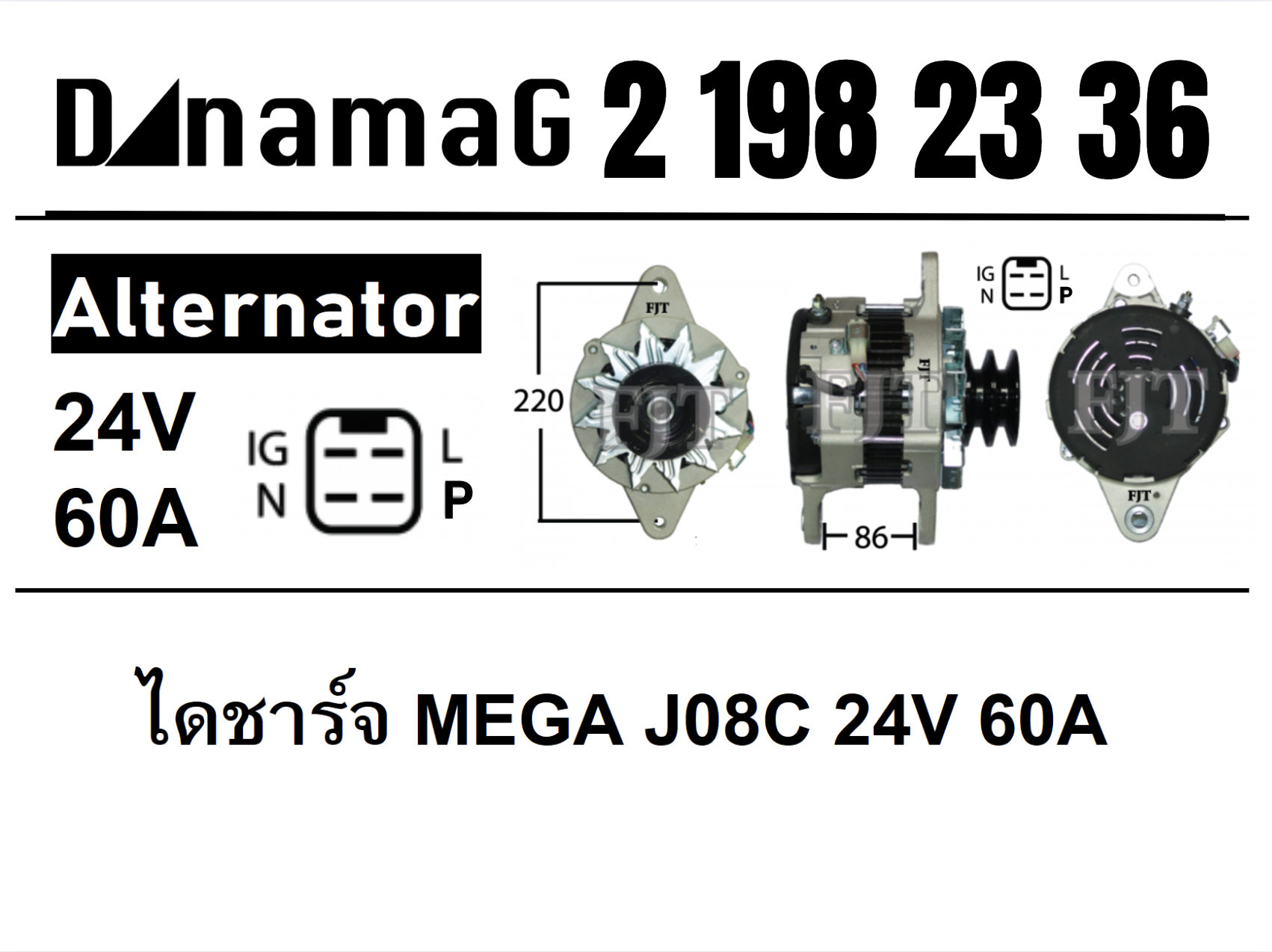 ไดชาร์จ Hino Maga JO8C 60A 24V # 2-198-06-07