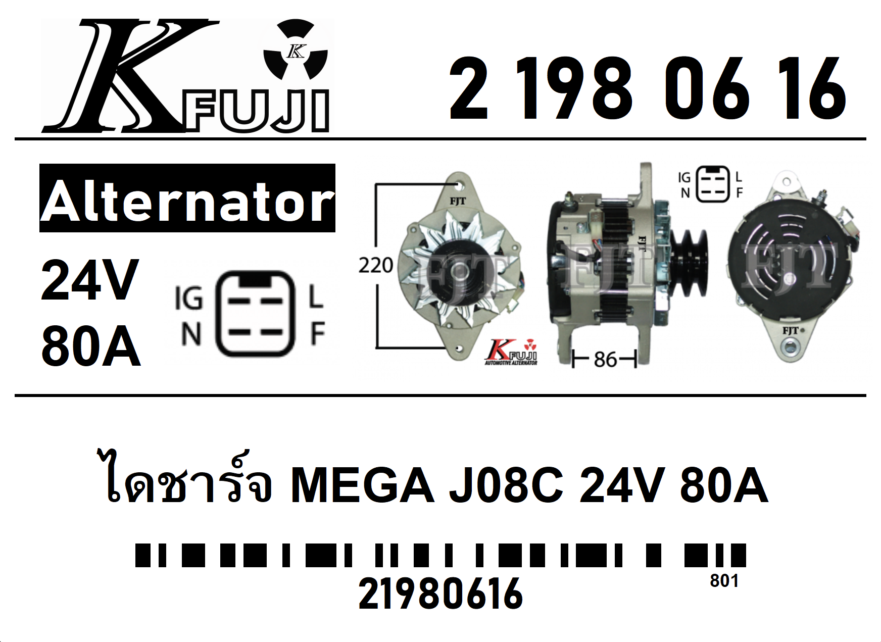 ไดชาร์จ Hino Mega JO8C 80A 24V 21980616