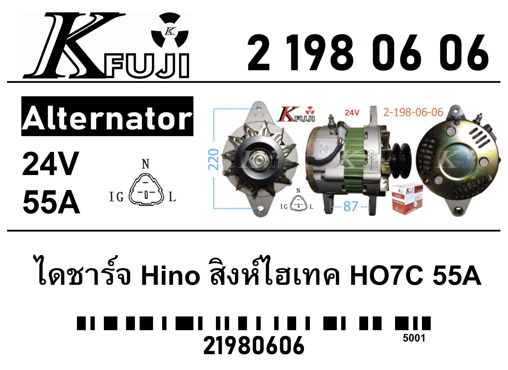 ไดชาร์จ Hino สิงห์ไฮเทค HO7C 55A 24V 2-198-06-06
