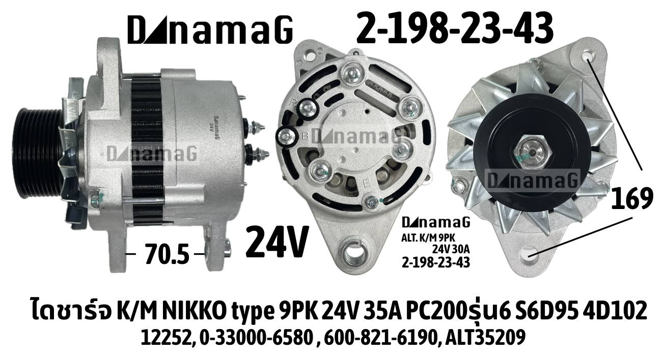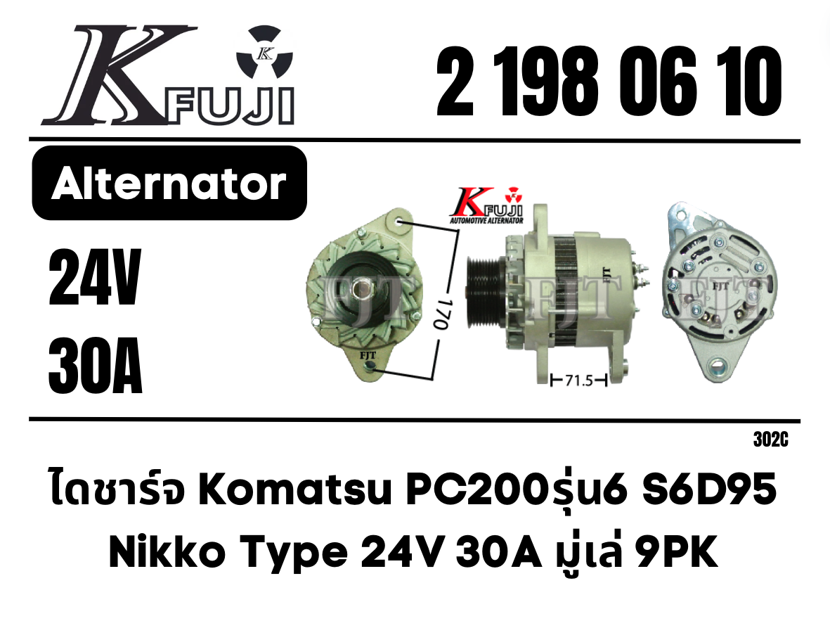 ไดชาร์จ Komatsu PC-200-6 S6D95 24V30A 9PK 21980610