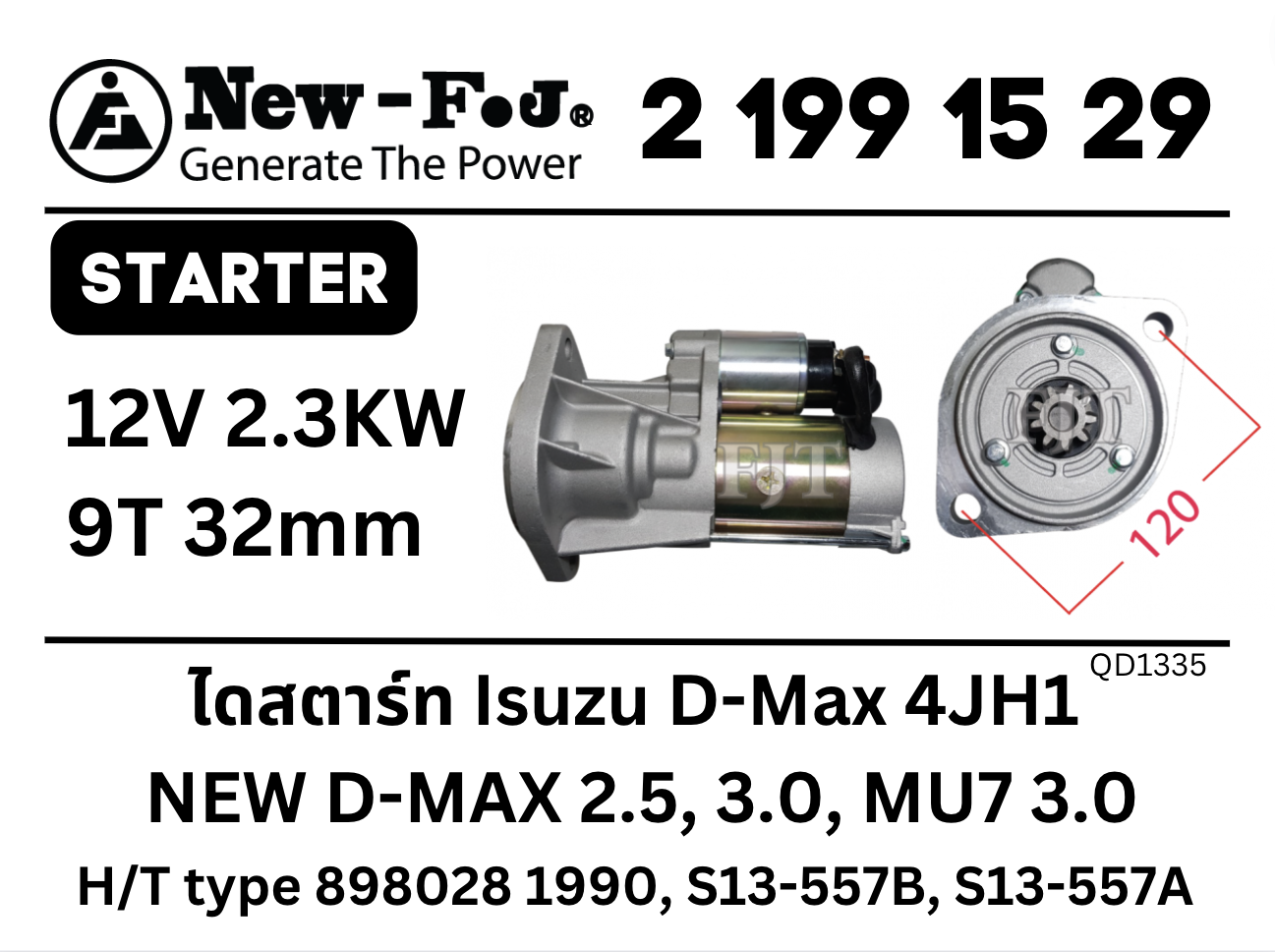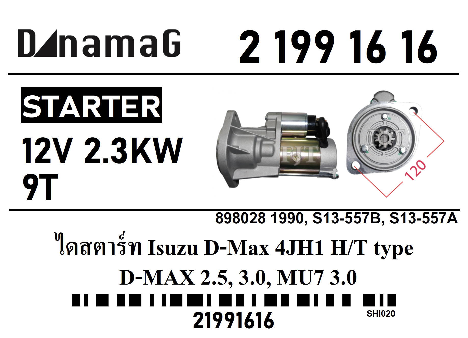 ไดสตาร์ท สำหรับ Isuzu D-Max ดีแม็กซ์ 4JH1 ,NEW D-MAX 2.5, 3.0, MU7 3.0 ทรงแบบฮิตาขิ