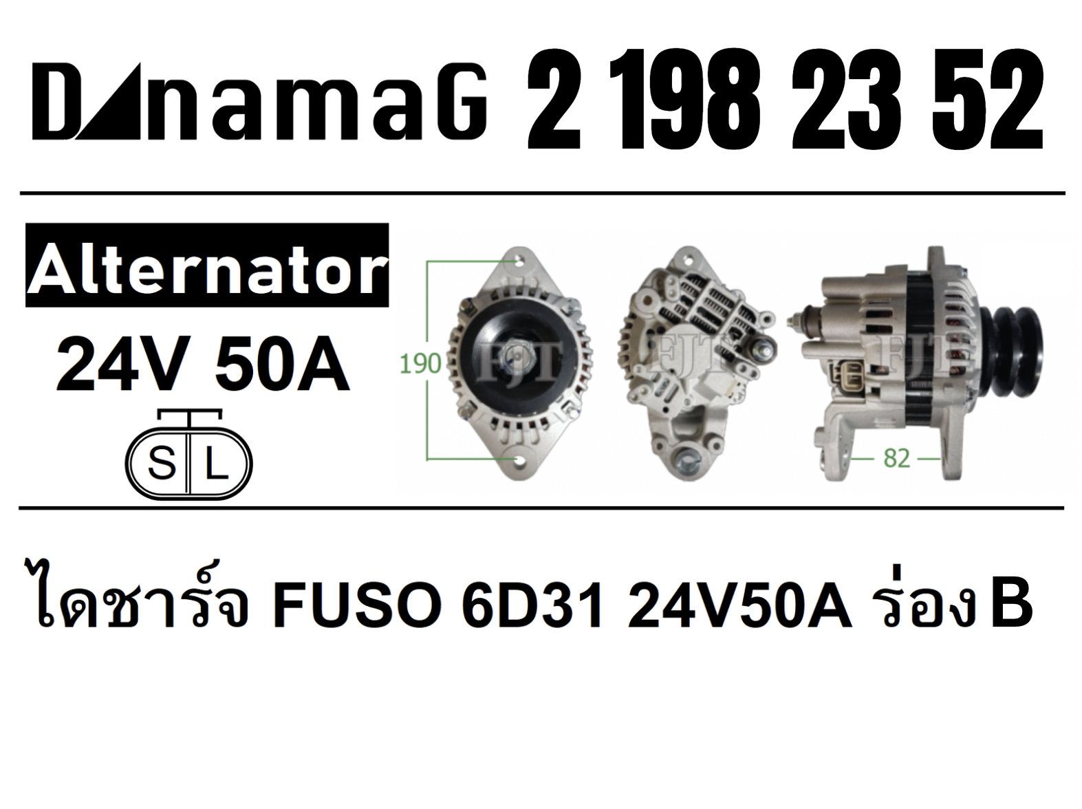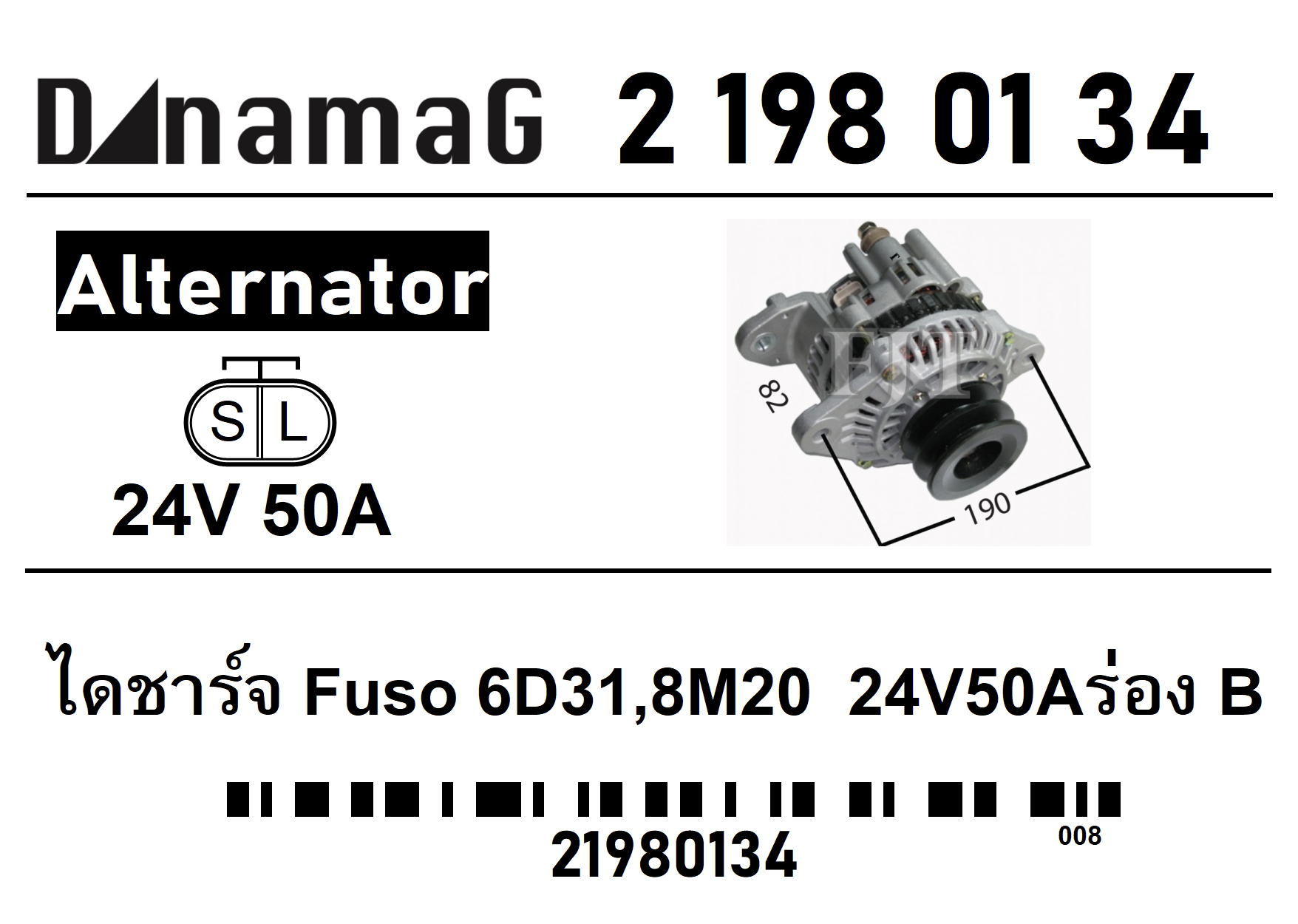 ไดชาร์จ Mitsubishi Fuso 6D31 ร่องB, 8M20 24V 50A 21980134