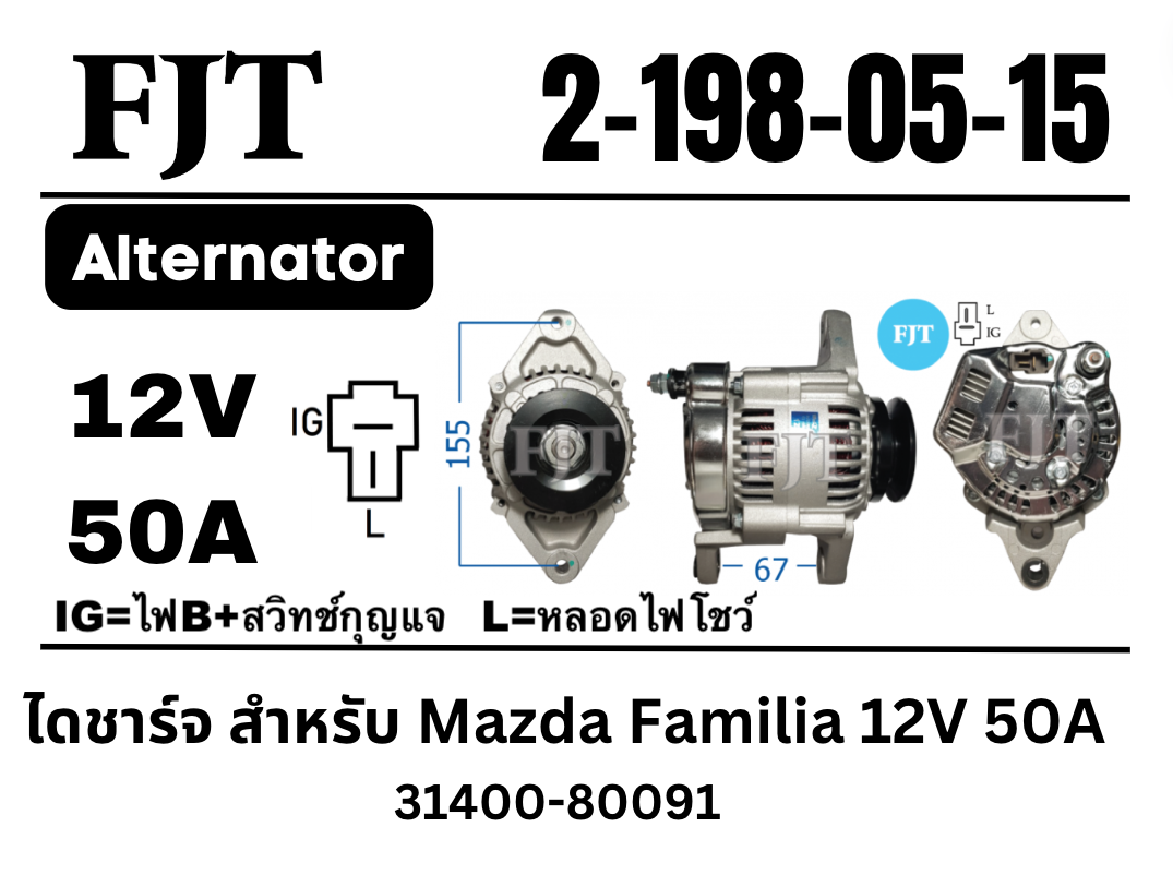 ไดชาร์จ Mazda Familia 12V 50A 21980515