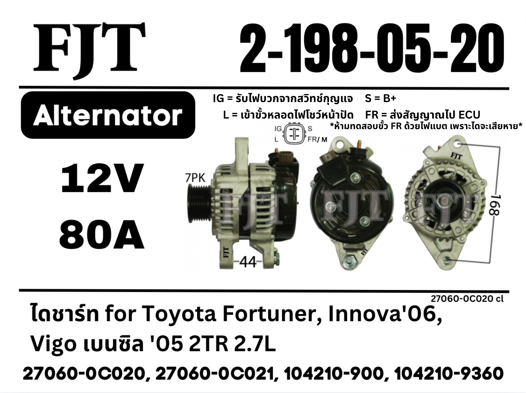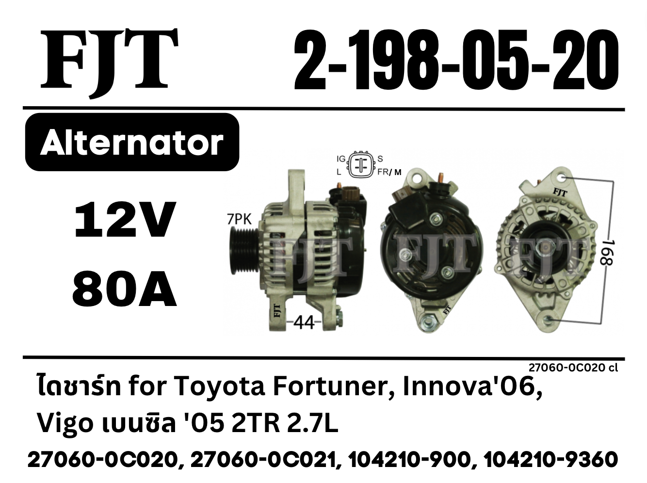 ไดชาร์จ VIGO, Fortuner, INNOVA เบนซิล 2-198-05-20, 2-198-02-58