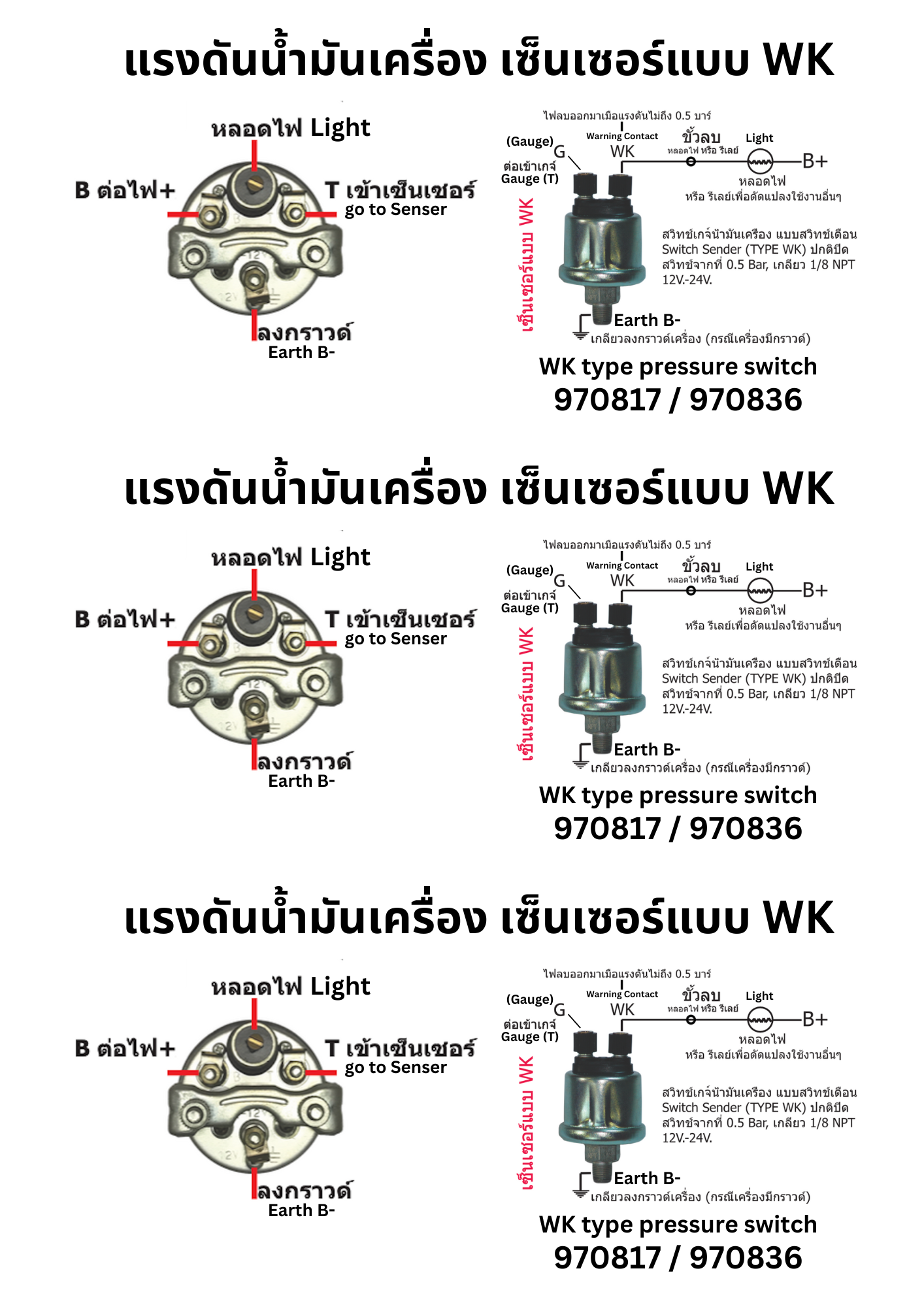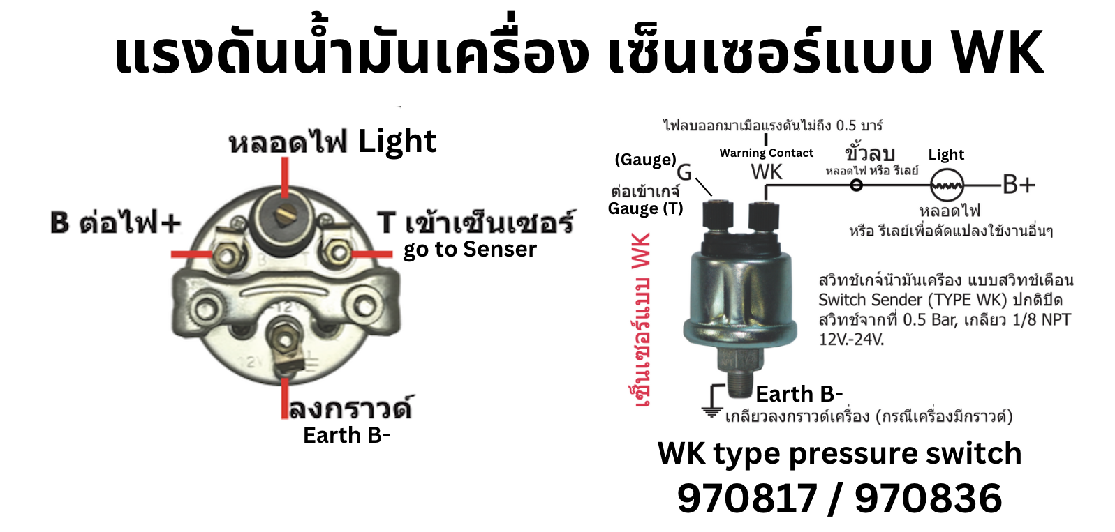 เกจ์แรงดันน้ำมันเครื่อง + เซ็นเซอร์แบบ WK (Warning contact type sensor)