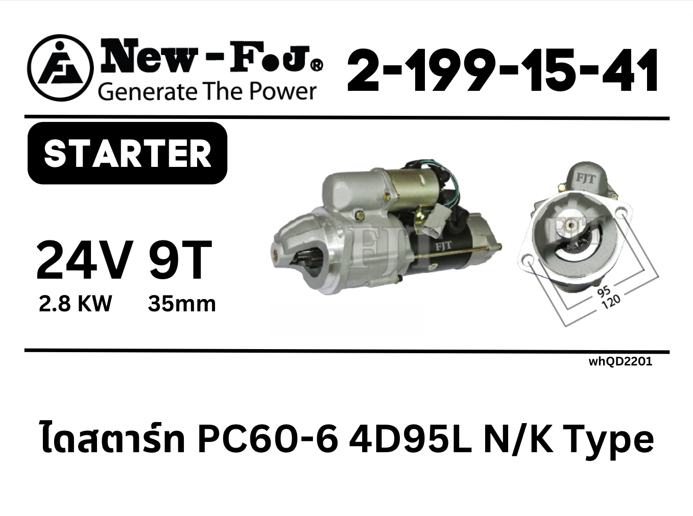ไดสตาร์ท PC60-6 24V 2.8KW 9T35mm 4D95L S4D95 PC-70