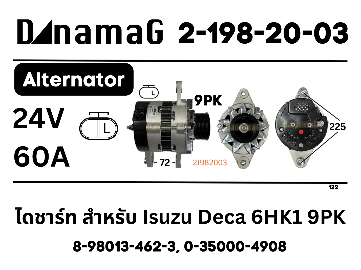 ไดชาร์ท isuzu deca 6HK1 9PK