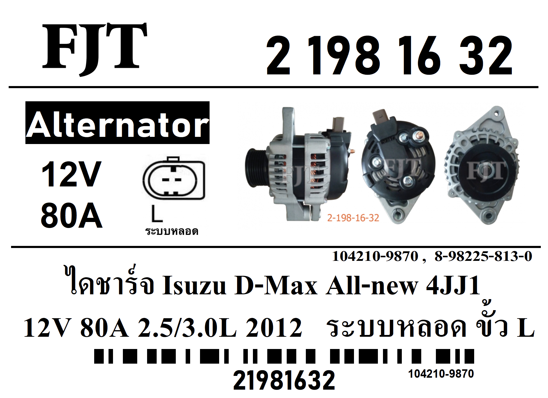 ไดชาร์จ Isuzu Dmax All-New ระบบหลอด(L) 2012 2.5/3.0L  21980456
