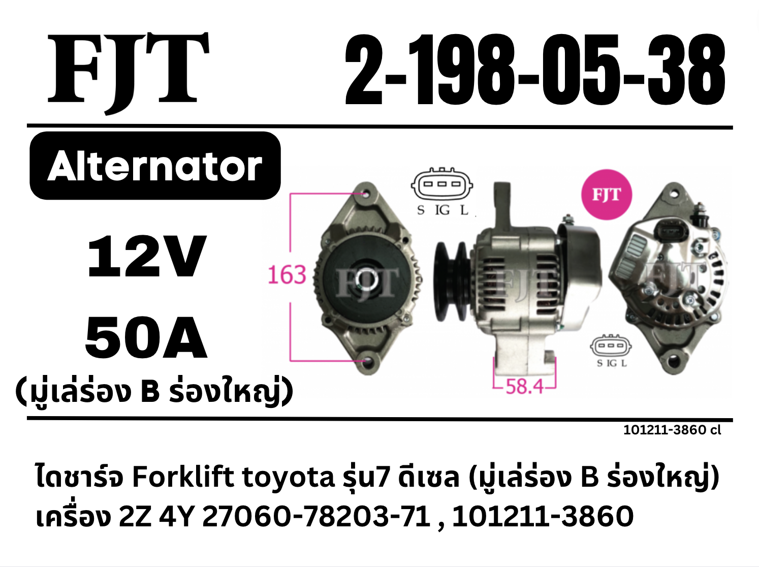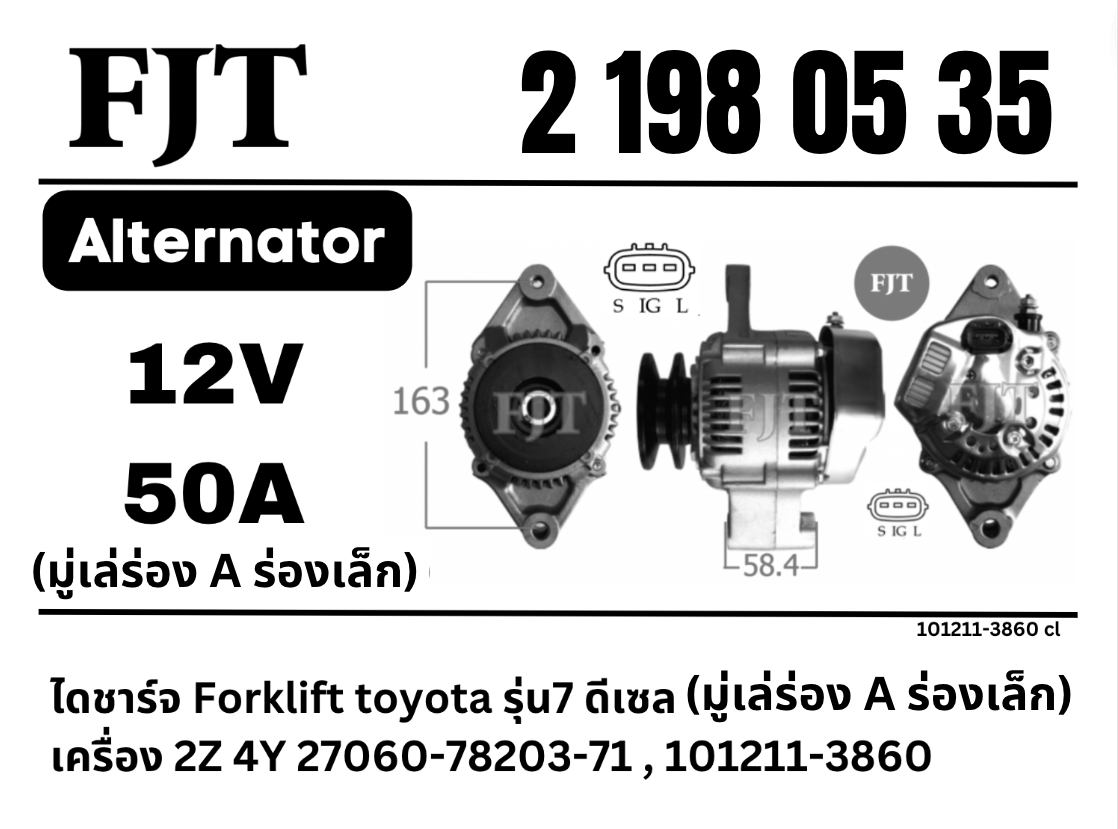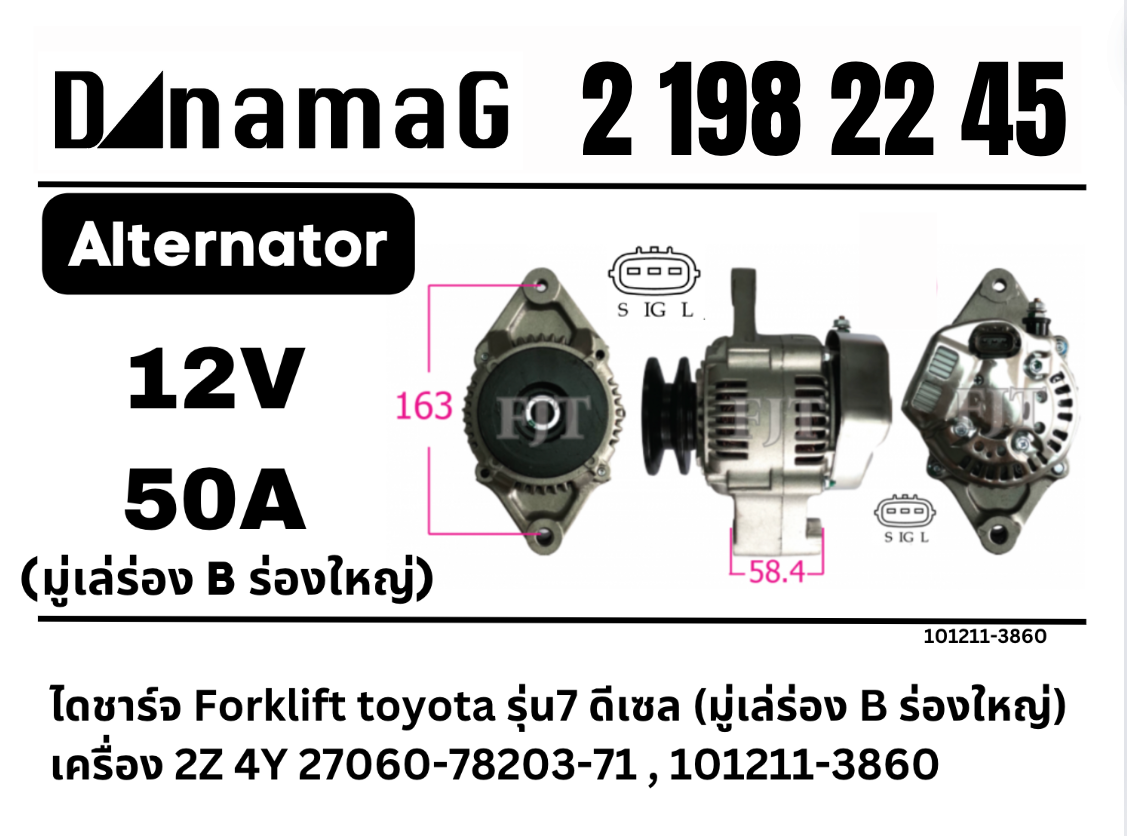 ไดชาร์จ Folklift toyota รุ่น7 ดีเซล 12v50a 21981405