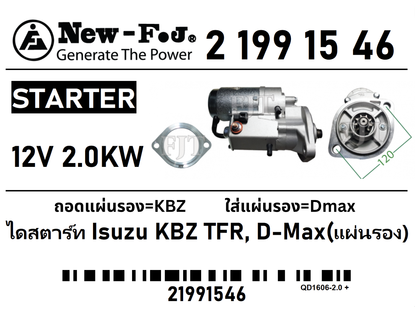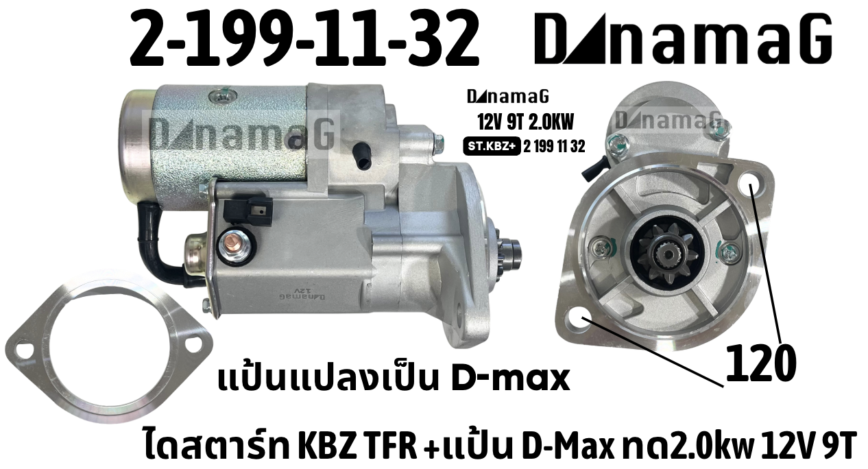 ไดสตาร์ท KBZ พร้อมแผ่นรองแปลง Dmax ทด 2.0KW