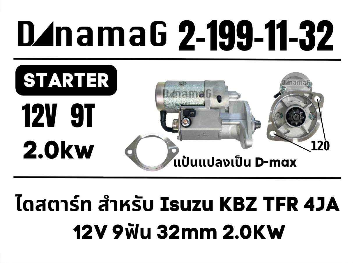 ไดสตาร์ท KBZ พร้อมแผ่นรอบแปลง D-max 12V ทด 2.0KW