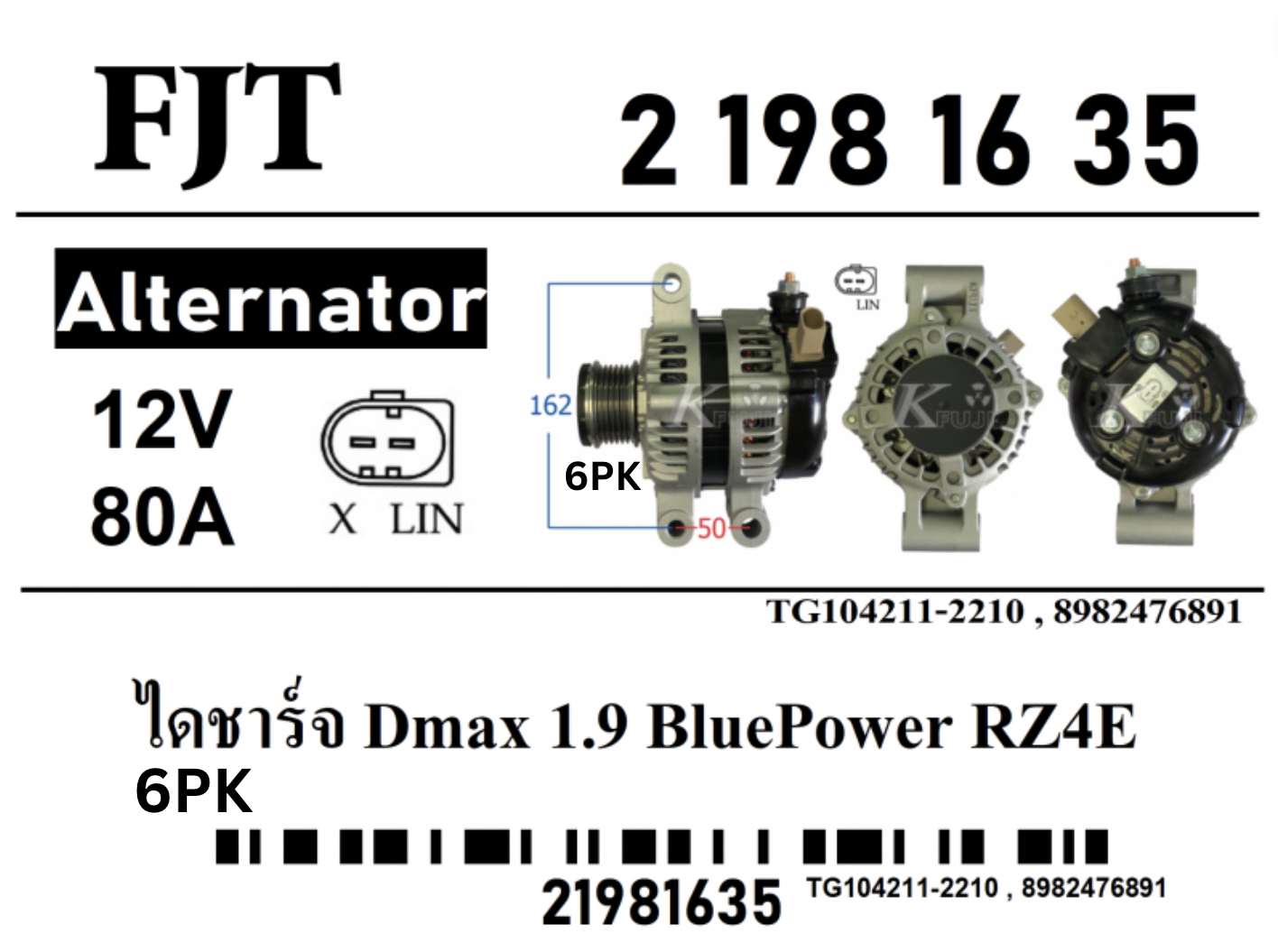 ไดชาร์จ Dmax 1.9 BluePower RZ4E TG104211-2210 , 8982476891