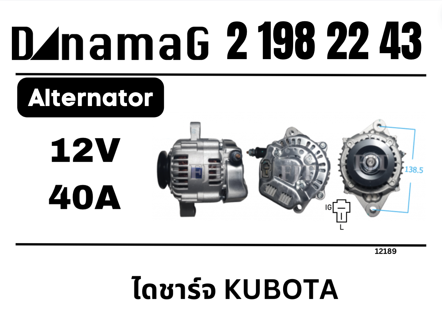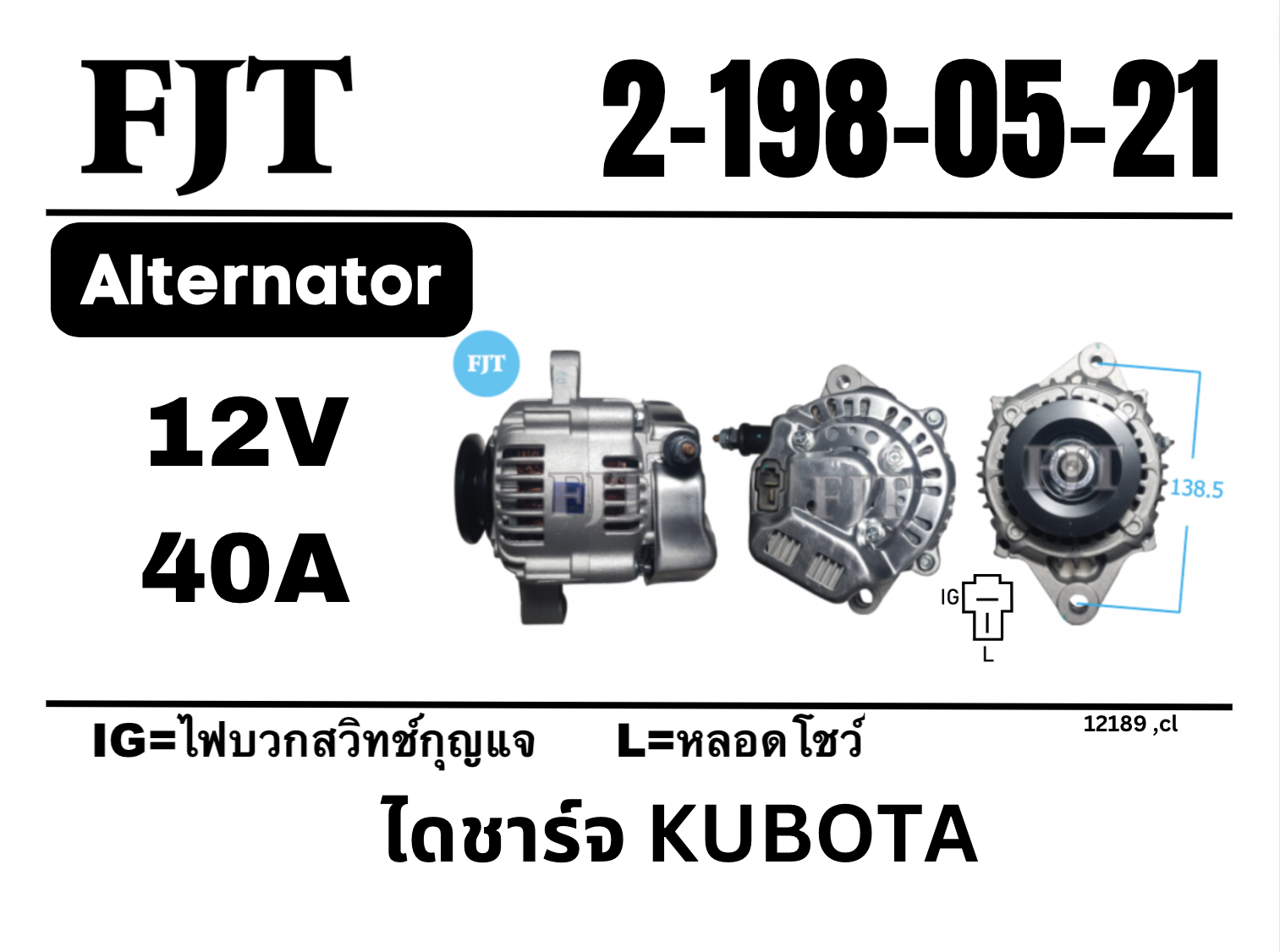 ไดชาร์จ Kubota 12V 40A 1ร่อง 2-198-05-21