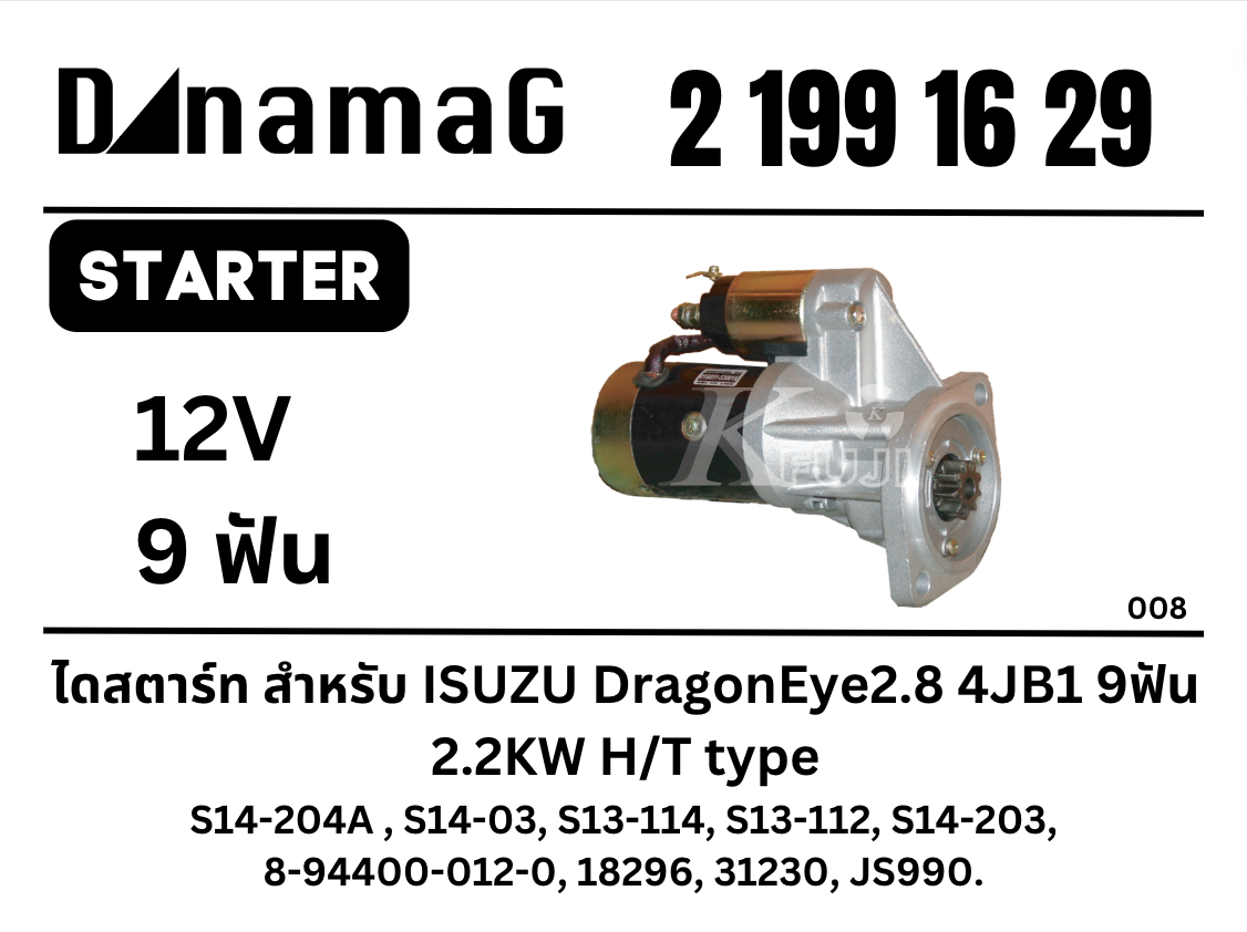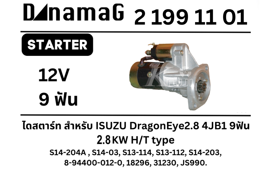 ไดสตาร์ท สำหรับ ISUZU TFR DragonEye2.8 4JB1 12V 9ฟัน 2.2KW Hitachi type