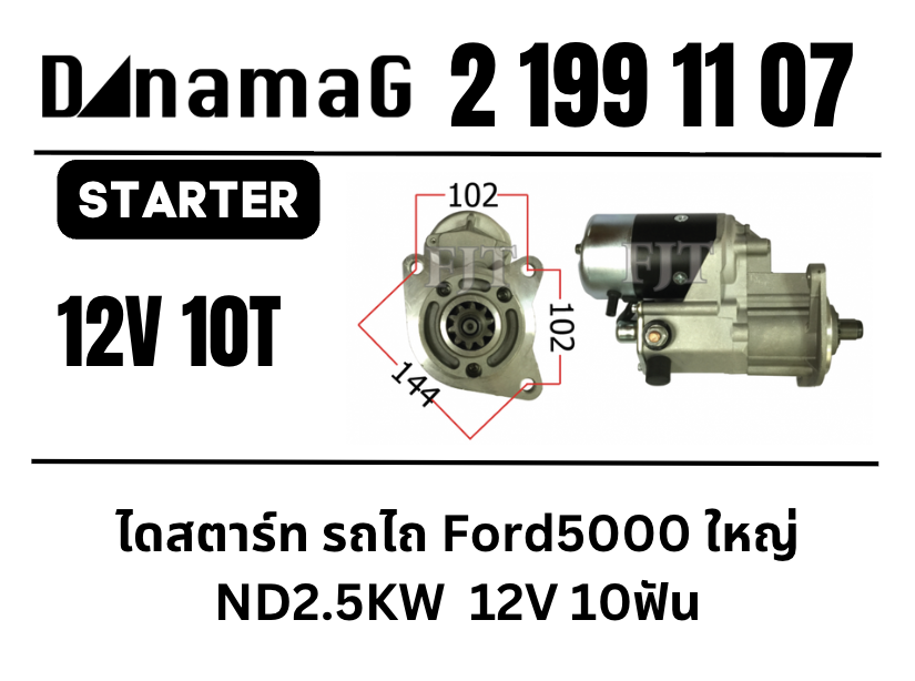 ไดสตาร์ท รถไถ Ford5000 12V ND2.5KW ใหญ่ 10ฟัน 40mm