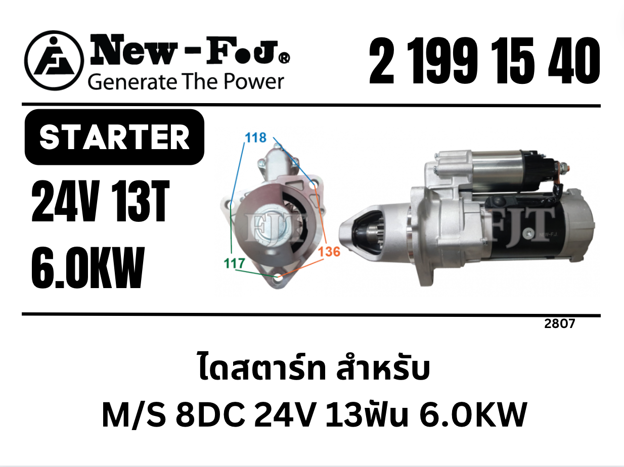ไดสตาร์ท สำหรับ Mitsubishi 8DC 24V 13ฟัน 6.0KW CW