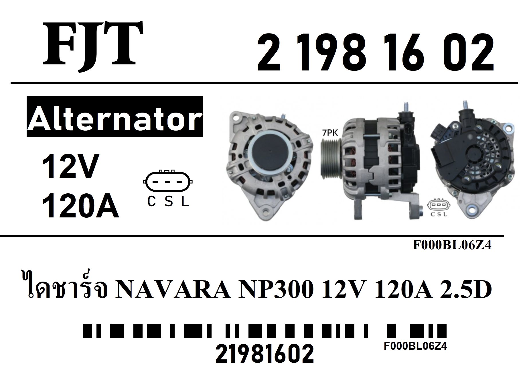 ไดชาร์จ NAVARA NP300 12V 120A 2.5D 2-198-16-02
