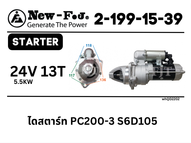 ไดสตาร์ท PC200-3 S6D105 24V 5.5KW 13ฟัน