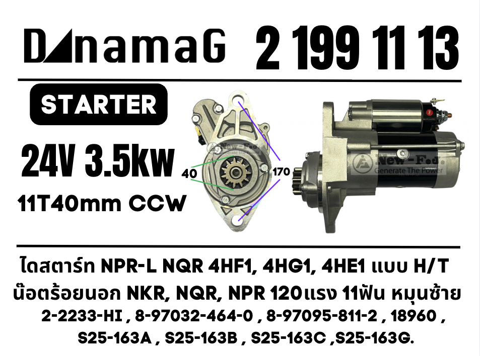 NKR, NQR, NPR 120แรง 11ฟัน40mm หมุนซ้าย 4.0KW 24V.