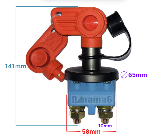 สวิทช์ตัดแบตฯแอมป์สูง(100A) หัวแดงฟ้า ใช้สำหรับรถยนต์