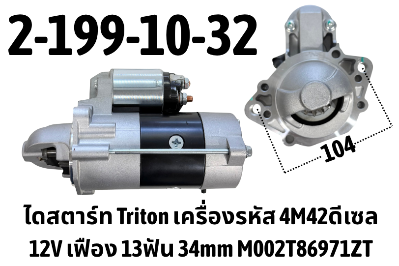 ไดสตาร์ท สำหรับ Triton 4M42ดีเซล M002T86971ZT 12V 13ฟัน